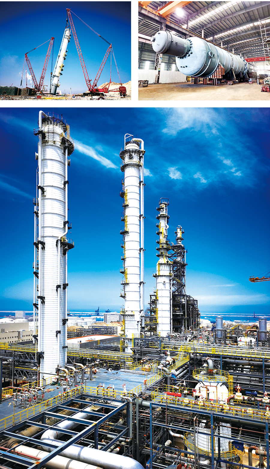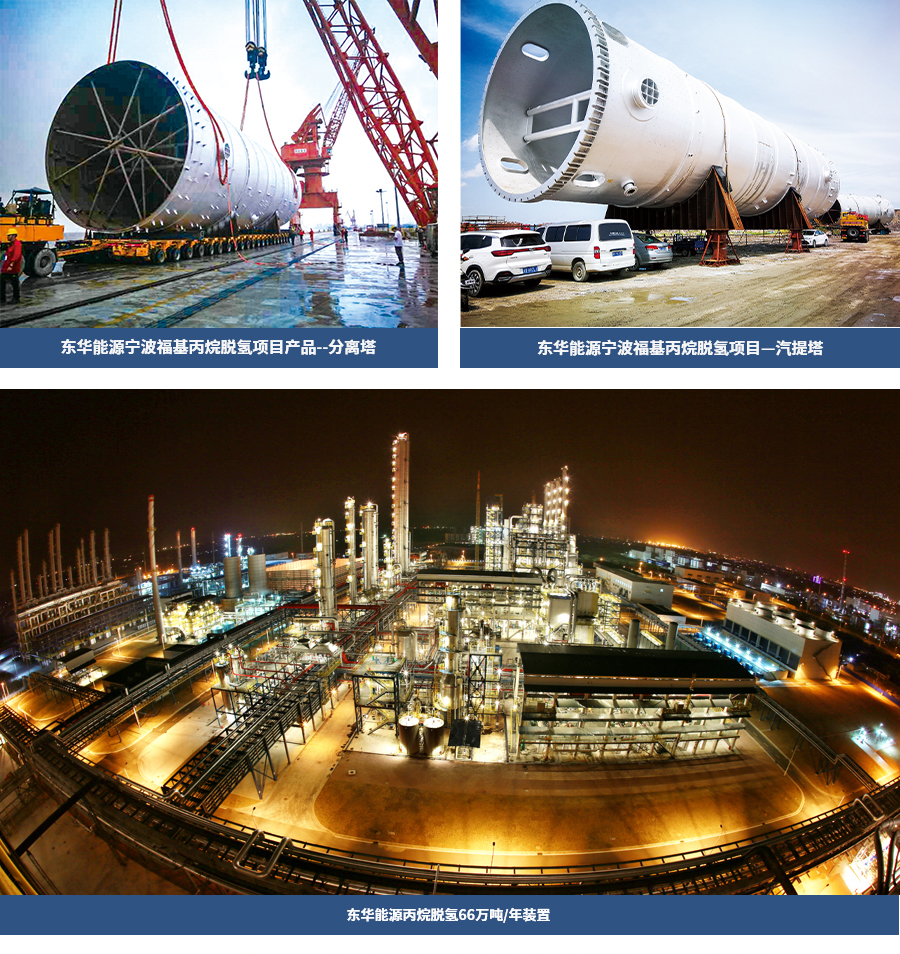 江蘇斯爾邦二期丙烷產(chǎn)業(yè)鏈項目本公司為該項目提供了丙烷脫氫(PDH)裝置丙烯丙烷分離塔、脫丙烷塔、脫乙烷氣提塔等三臺大型設(shè)備,其中最大丙烯丙烷分離塔塔體直徑10米,長度108米,重量1400噸。 煙臺萬華項目