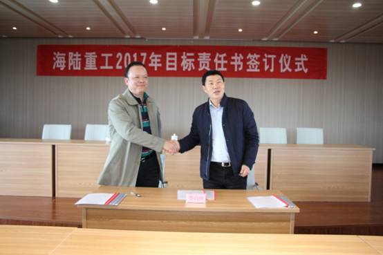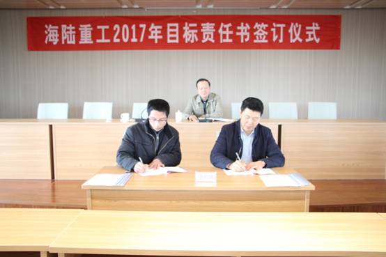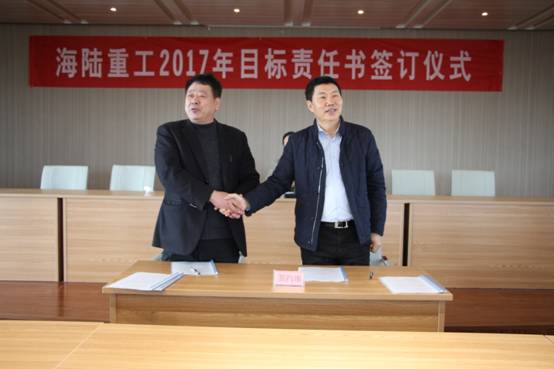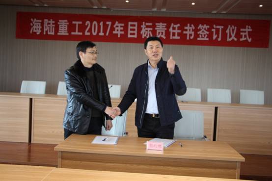 2月6日,新春伊始,為實現(xiàn)公司的持續(xù)快速發(fā)展,順利完成年度經(jīng)營計劃,貫徹落實公司績效管理政策, 2017《績效目標責任書》的簽訂儀式。責任書明確了公司事業(yè)部和責任主體的權(quán)利與義務(wù),并對各事業(yè)部經(jīng)營與管理任務(wù)指標進一步量化了考核標準,在公司原有考核獎勵機制、績效考評等基礎(chǔ)上進行了優(yōu)化與改進。會上董事長徐元生做了重要講話,徐總指出一年之際在于春,2017年各部門目標責任書的簽訂,對于公司的未來發(fā)展,意義非凡。目標責任書的簽訂,只是一個起點,這個起點是理性的,務(wù)實的,也是富有激情的。最后,徐總希望簽約的各位領(lǐng)導(dǎo)干部壯志在我心,揚鞭在腳下,快速地行動起來!用樂觀自信的態(tài)度,拿出全力以赴的精神,充分展現(xiàn)自己的才能,注重上下團結(jié)協(xié)作,發(fā)揮自己聰明才智,創(chuàng)造出海陸重工2017年新的輝煌。