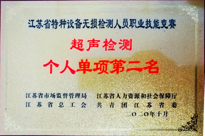 熱烈祝賀!我司在江蘇省首屆特種設(shè)備無(wú)損檢測(cè)人員職業(yè)技能競(jìng)賽中奪得優(yōu)異成績(jī)!
