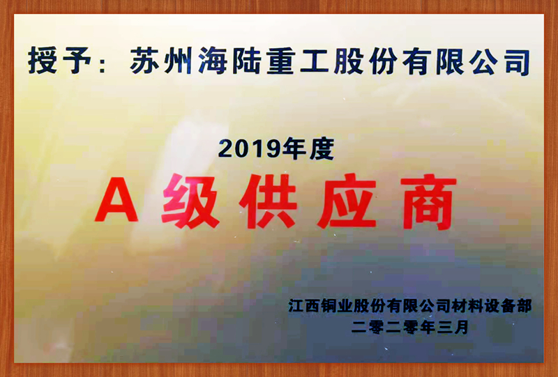 海陸重工被評為“2019年度江銅A級供應(yīng)商”